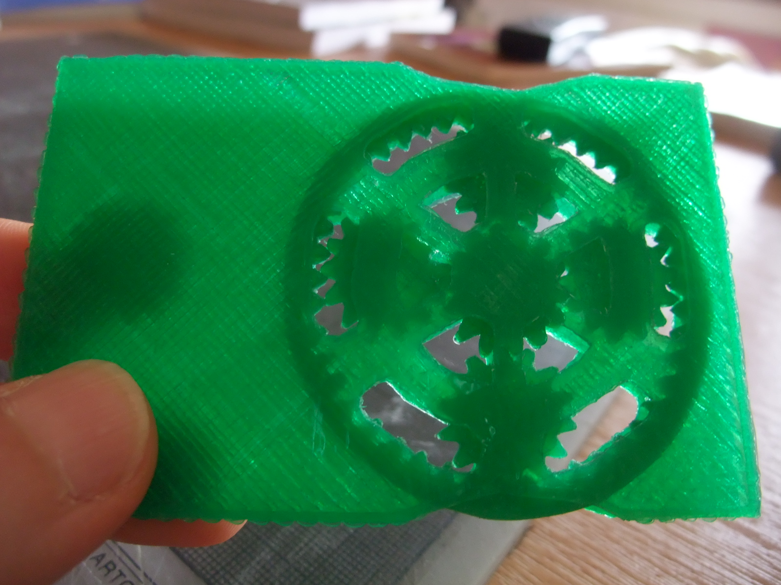 Au tout début j’avais des problèmes de positionnements (calibration), par la suite d’adhérence (impression sur papier de verre, retour au kapton), et finalement les derniers problèmes que j’ai eu étaient au niveau de la température.